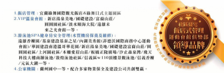 Slide 1熊霸國際-Xiong Ba-∞∞∞∞∞物業管理社區游泳池企業健身俱樂部管理健身、泳池、物業 專業管理團隊READ MORESlide 1Slide 3從空間、設備維護營運,到活化注入生氣 在『熊霸國際-Xiong Ba-】我們相信 好的環境、為人們創造幸福感。 專業服務項目 休閒設施管理 社區會館與俱樂部設施管理 學校游泳池營運管理 公立運動場館經營管理 專業游泳教學服務 專業設備維護 游泳池與SPA水質維護管理 游泳池機房設備維修保養 現場安全維護與救生員派遺 各項運動工程設計施工 全方位增值服務 新社區游泳池環境設備點交 救生器材與水質管理耗材代購 泳裝與泳池周邊商品代購 各項育樂活動規劃辦理 最新消息 2024.11月 榮獲獎項 兩岸企業家交流 創業路演比賽榮獲三等獎 熊霸國際很榮幸在2024年兩岸企業家交流創業路演比賽中脫穎而出, 榮獲三等獎的殊榮。這份肯定不僅證明了我們在物業管理與休閒服務領域的專業實力, 更展現了公司在創新服務模式上的傑出表現。 我們將持續秉持專業精神,為客戶提供更優質的服務, 竭誠為兩岸的物業管理產業發展貢獻心力。 聯絡Xiong-ba熊霸國際